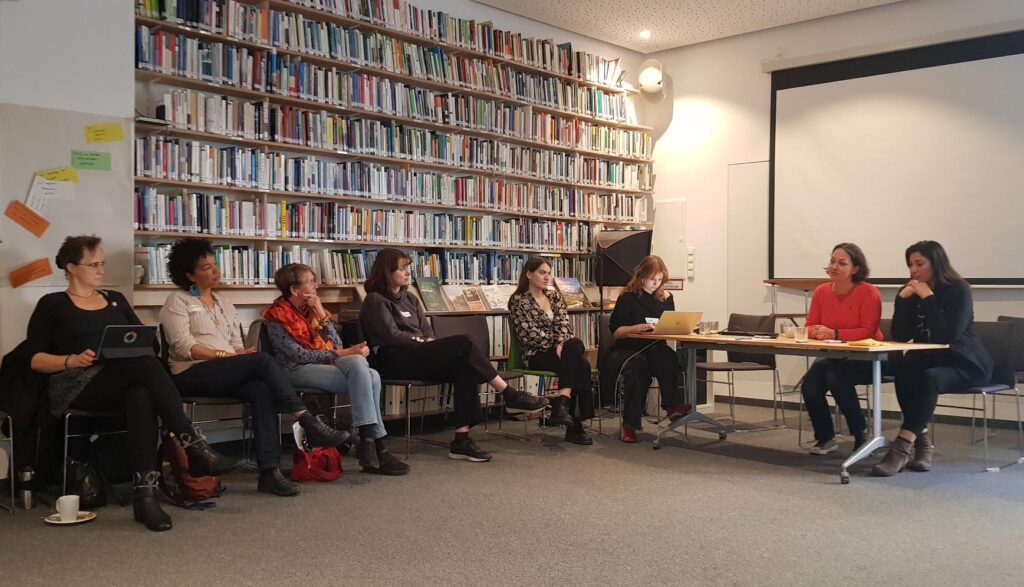 Am Samstag und Sonntag haben wir gehört, worin sich im letzten Jahr jede allein oder in entsprechenden Gruppen und Netzwerken eingebracht hat, eine stattliche Zahl von Aktivitäten in verschiedenen Formaten. Dazu gehörten etwa die Organisation von und Teilnahme an Demonstrationen, Berichte von UN-Sitzungen oder die regelmäßigen Radiosendungen der Münchner Regionalgruppe. Mich hat es beeindruckt, war ich persönlich doch unzufrieden vor etwa zwei Jahren als Mitglied bei WILPF ausgetreten und jetzt erwartungsvoll wieder dabei – und wurde nicht enttäuscht. Alle unsere Erfahrungen und auch unsere Überlegungen für die kommende Jahresstrategie, die wir bei der Mitgliederversammlung ebenso entwickelt haben, waren beeinflusst von den finanziellen Kürzungen und dem wachsenden Druck auf die engagierte Zivilgesellschaft in Deutschland und weltweit.